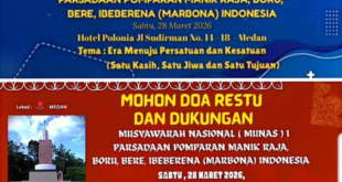 Pelaksanaan Musyawarah Nasional (Munas I) Parsadaan Pomparan Manik Raja, Boru, Bere Dohot Ibeberena (MARBONA) Indonesia yang dilaksanakan di Hotel Polonia Jalan Sudirman Medan berjalan sukses dan hikmat serta penuh kekeluargaan, pada bHari Sabtu (28/3/2026). Adapun Materi Munas I yang dilaksanakan dengan sebagai berikut : 1.Laporan Pertanggung Jawaban DPP 2018 -2026 …